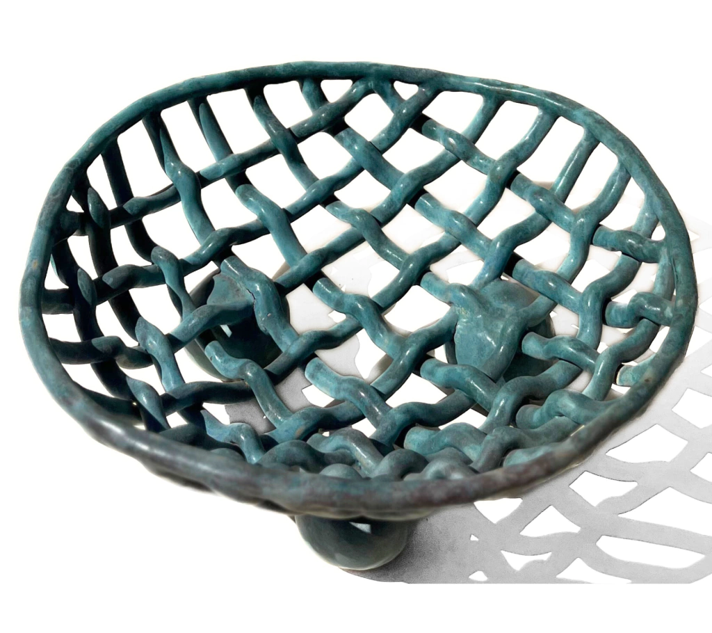 Grande Centro de mesa vintage em cerâmica, assinado, com provável datação entre as décadas de 1960 e 1970. A peça apresenta desenho escultural em trama vazada, com composição orgânica que remete a formas entrelaçadas, criando forte impacto visual e jogo de luz e sombra.